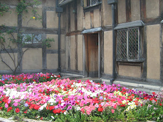 Whenever I visit Stratford, the one place I always visit is Shakespeare's birthplace. I'm always amazed that this house is still standing in a modern street. The 'birthplace' has been open for business for about 250 years. I first went as a child, and it was very basic. Now there are characters in Elizabethan dress and each room has been staged as it might have been when Shakespeare lived there. Of course, the house has been added to over the years and of course, I can't help speculating how much of the house is genuine. I was assured that 70% of the timbers were original. There are no original pieces of furniture that belonged to the Shakespeare family, but it is interesting the way the rooms have been set out. William Shakespeare was born here in 1564. His father was a glover. When he married Anne Hathaway aged 18, the couple lived here for a further 5 years.